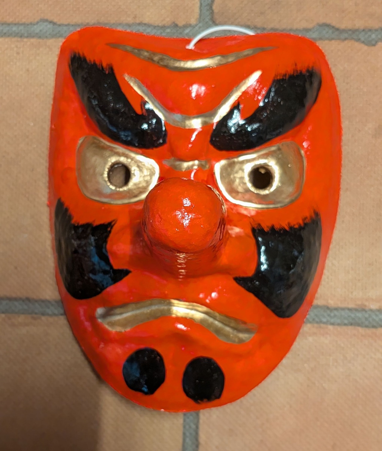 ※こちらの天狗面には、商品画像3を例とした麻のヒゲを追加することができます。(その場合、注文後5日以上お時間を頂く場合がございます。ご了承下さい。)